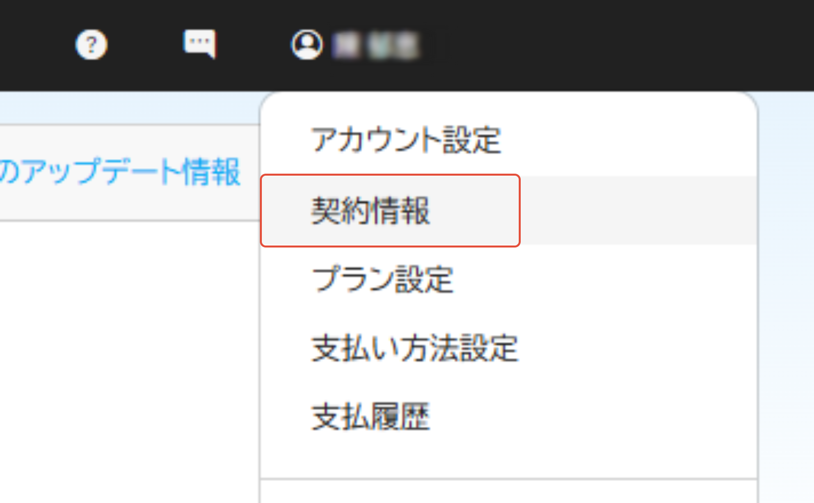管理画面の右上のアイコンをクリックして、「契約情報」より確認できます。![]() | FreeプランまたはProプランをご利用の可能性があります。 ※管理画面左上で下記のようにFreeかProが表示されていないかを確認してください。 ![]() ![]() |