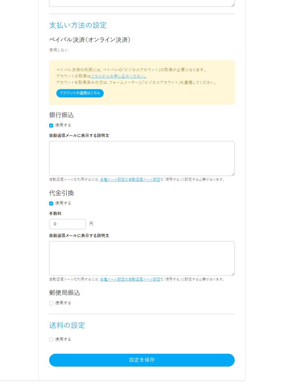 PayPal決済をご利用の場合、PayPalアカウントの連携が必要です。詳しい設定は下記の記事をご確認ください。 |