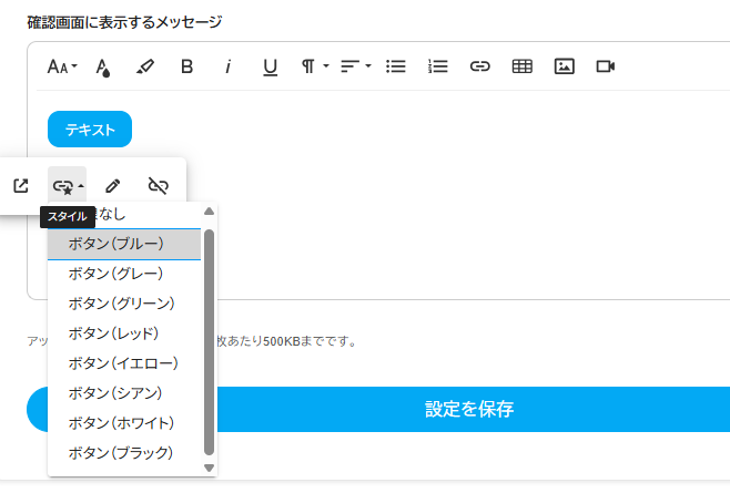 リンクを設定したあと、設定したリンクをクリックして編集メニューの「スタイル」をクリックすると、ボタンに設定できます。